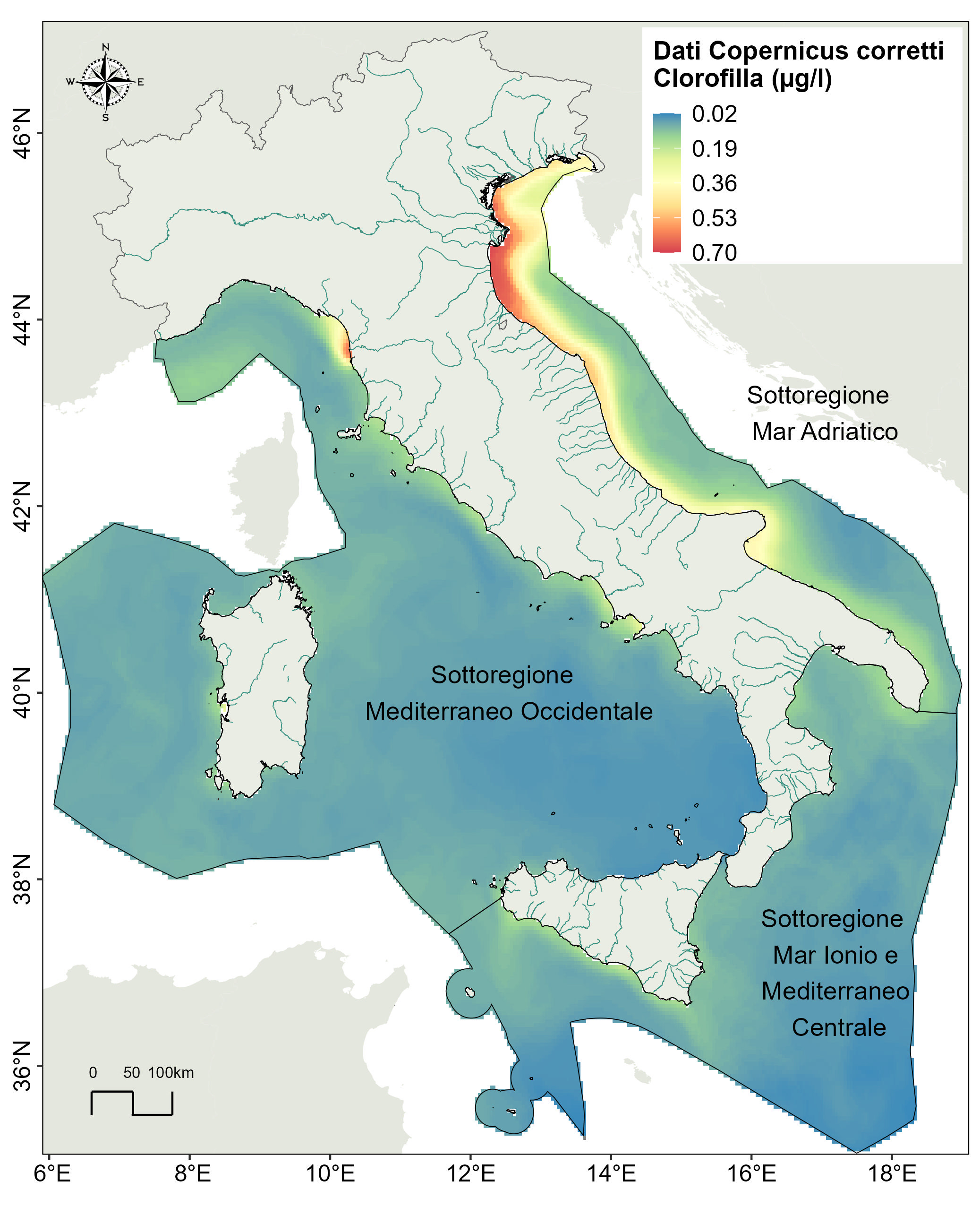 The indicator is included as a Descriptor within Directive 2008/56/EC and is part of the 11 qualitative Descriptors for which Good Environmental Status (GES) must be achieved in each of the three marine sub-regions (Adriatic Sea, Ionian Sea and Central Mediterranean Sea, and Western Mediterranean Sea). The Directive requires, for Descriptor 5, that human-caused eutrophication is minimised, in particular its negative effects, such as loss of biodiversity, ecosystem degradation, harmful algal blooms and oxygen deficiency in bottom waters.