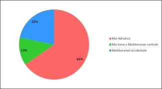 Figure 3,4,5: Concentrazione annuale percentuale dei microrifiuti nel Mar Adriatico, Mediterraneo occidentale, Mar Ionio e Mediterraneo centrale