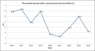 The evaluation of the trend of microwaste concentrations in the surface layer of the water column is limited by the high spatial and temporal variability of the phenomenon, influenced by hydrodynamic factors and local anthropic pressures. Only long historical data series and homogeneous sampling in time and space would allow the identification of statistically significant and reliable variations.