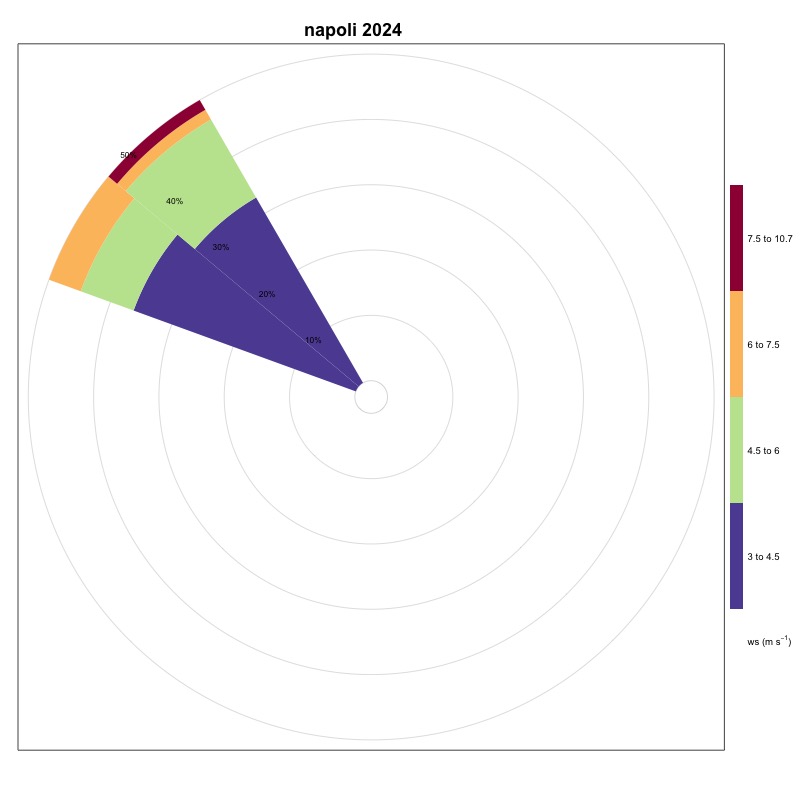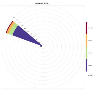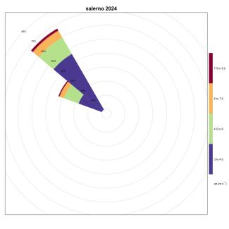 The frequency of events for the stations of Naples (Figure 11), Salerno (Figure 20) and Palinuro (Figure 15) are respectively equal to 0.66%, 1.41% and 0.58%.