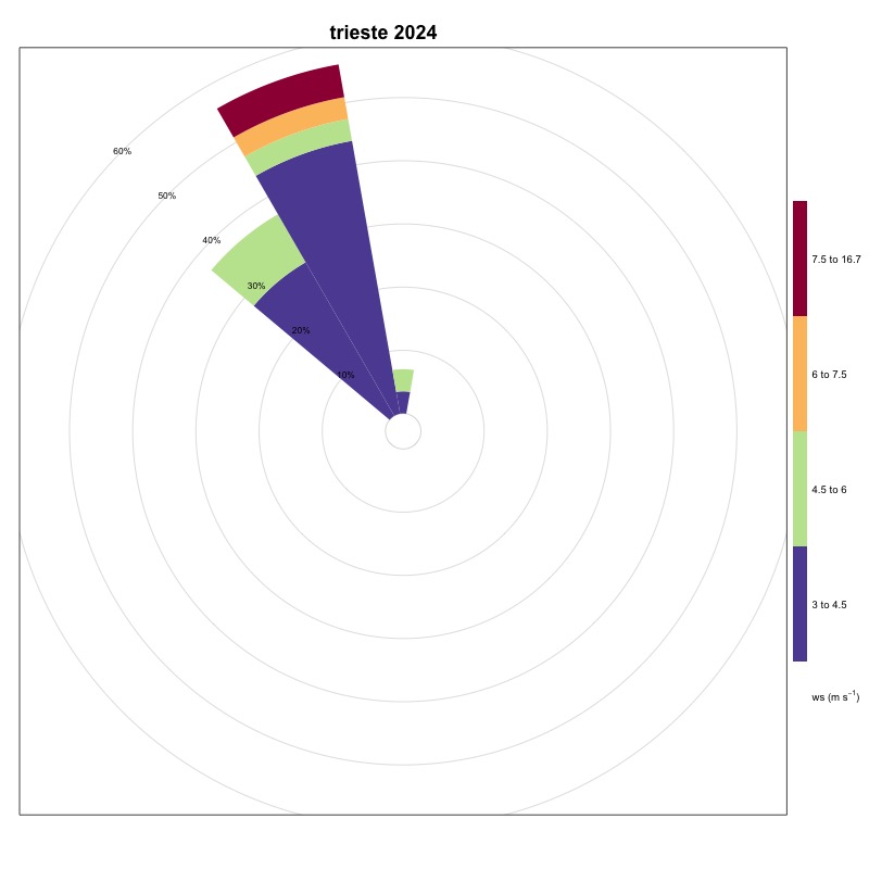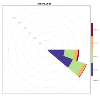 The frequencies recorded in the northern area are respectively for Trieste (Figure 22), Venice (Figure 23), Ravenna (Figure 18), Ancona (Figure 1) equal to 0.65%, 2.98%, 5.25% and 4.09%.