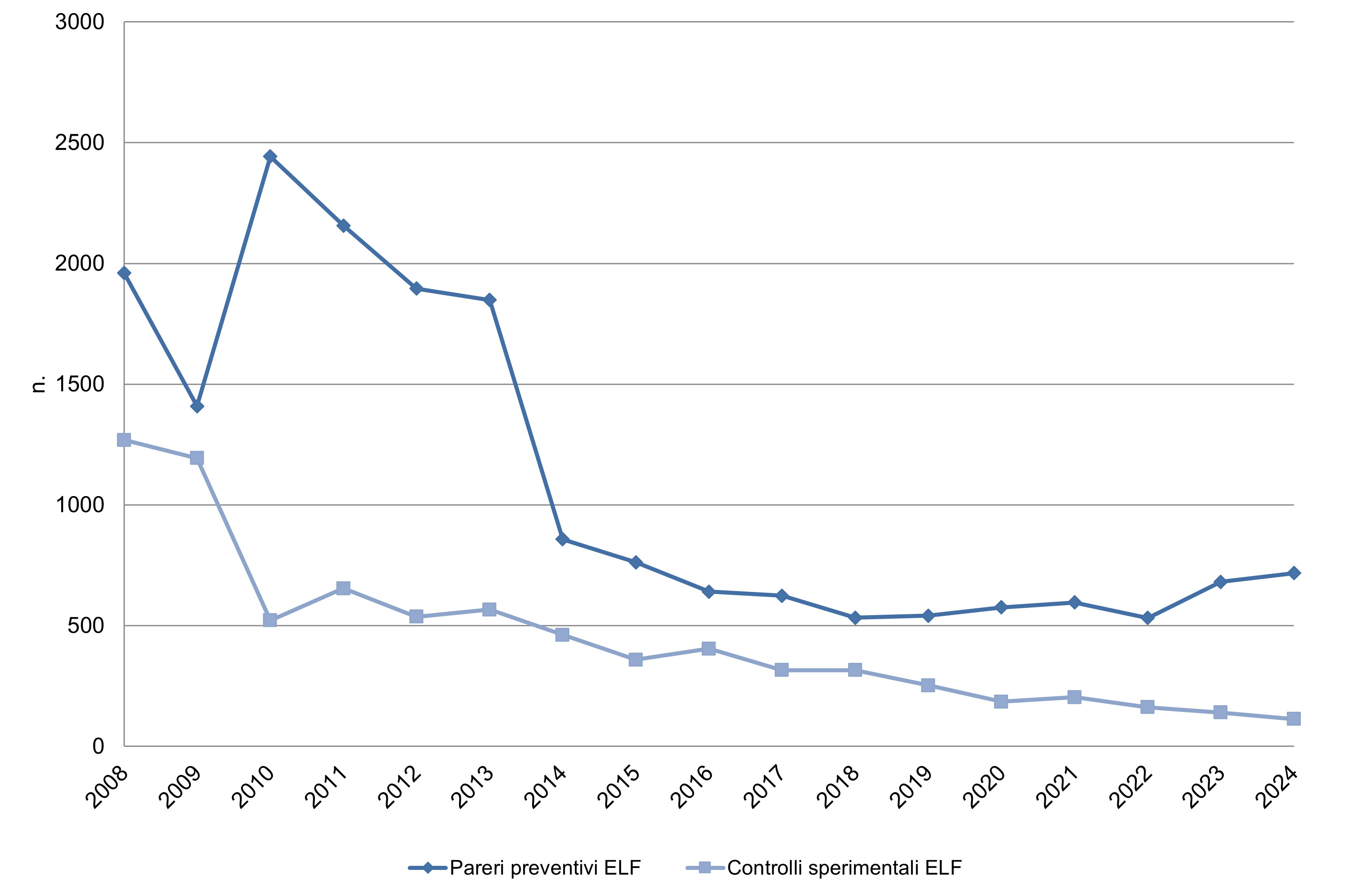 For the above-mentioned trend analysis, both the Regions/Autonomous Provinces that provided complete data for the entire 2008–2024 time period for ELF sources, and those for which it was possible to integrate missing information by using the relevant data from the previous year or, if unavailable, from the first subsequent year available, were considered.