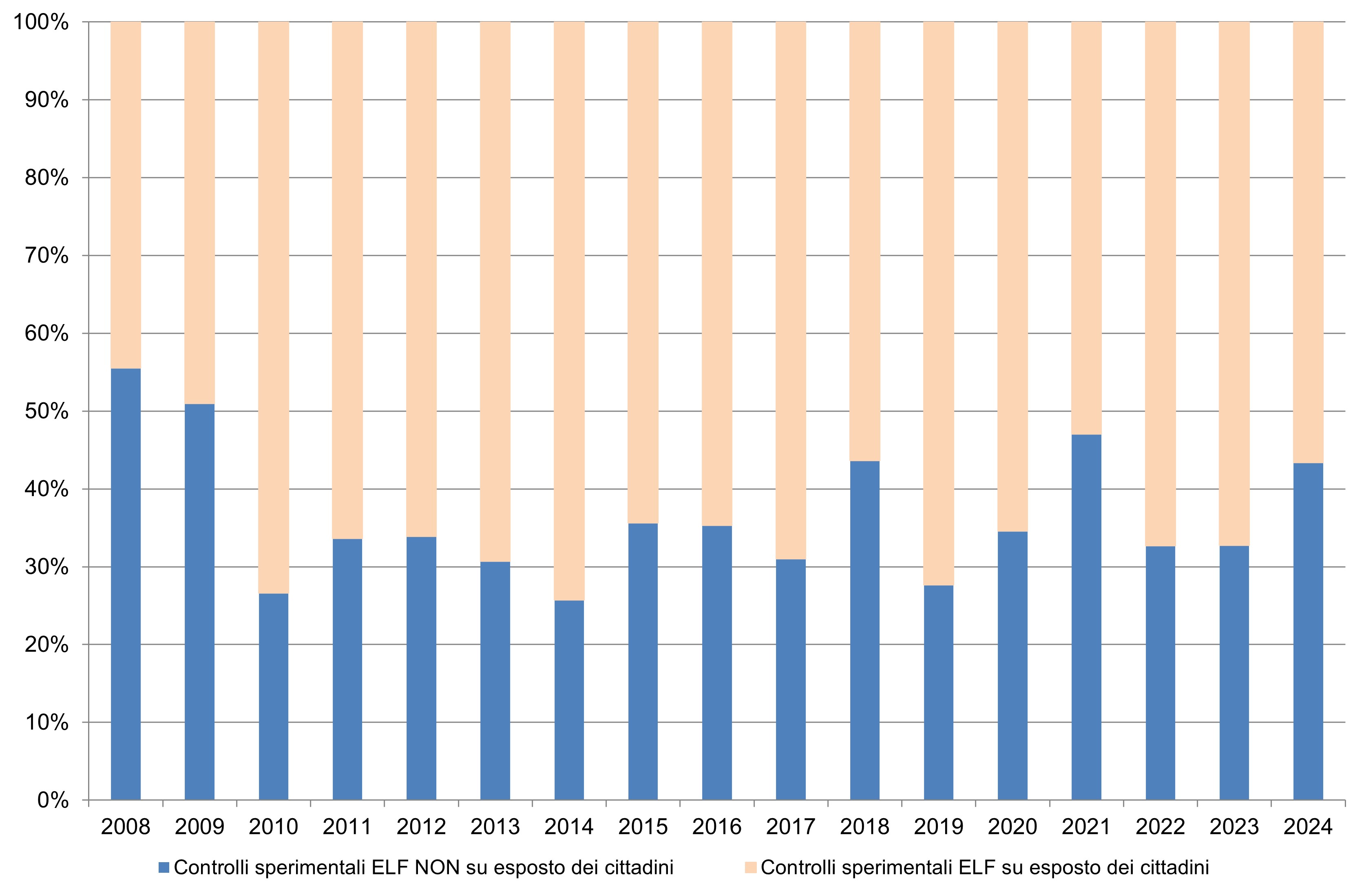 Figure 2: Percentage of experimental inspections carried out following citizens’ complaints and not following citizens’ complaints on ELF installations.
