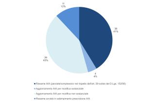 The indicator was developed through calculations based on the number of AIA provisions (Overall Review) issued by MASE on the basis of the provisions of European legislation in order to prevent, reduce and keep under control emissions into the environment from industrial installations in application of BAT as well as state AIA modification and review provisions issued by MASE, distinguished by categories of installations and by type of procedure and the related percentages.
