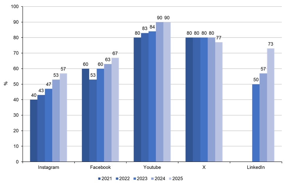 - Social networks (Facebook, X, Instagram, LinkedIn): 1.