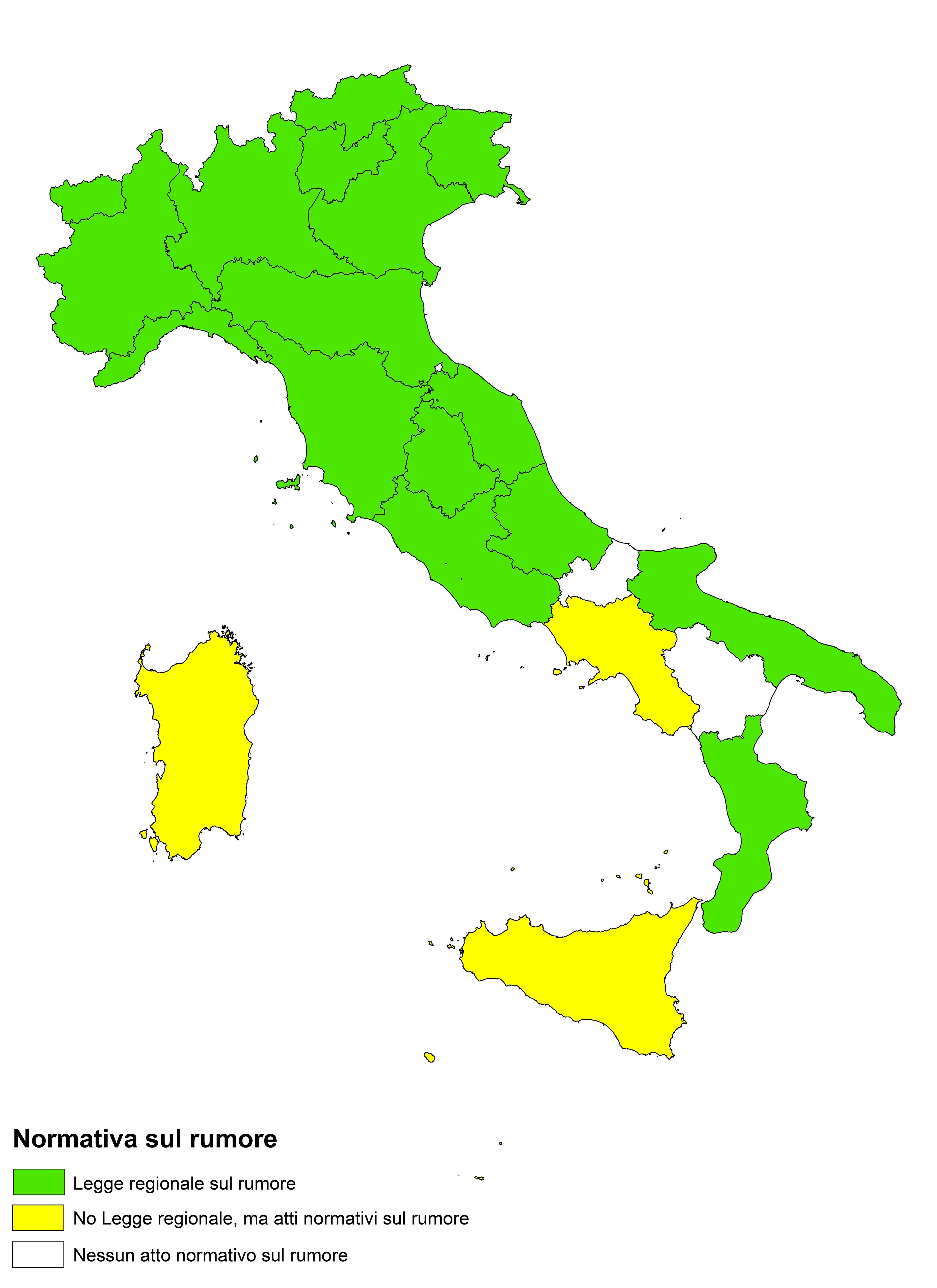 Since the issuance of the LQ, the regional legislative framework is not yet complete: 5 regions have not adopted a law on noise pollution; of these, 3 regions have however approved specific acts.