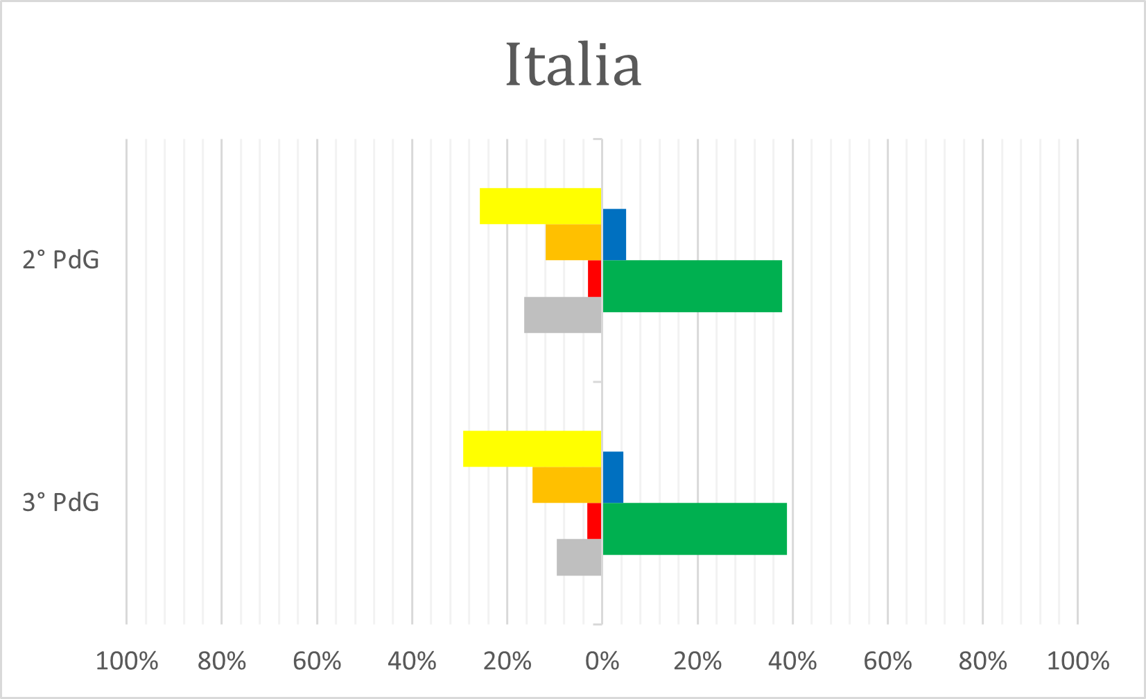 Figura 3c: Stato ecologico nazionale dei corpi idrici delle acque superficiali – fiumi e laghi - Confronto 2° ciclo (2015-2021) e 3° ciclo (2021-2027) dei Piani di Gestione delle Acque