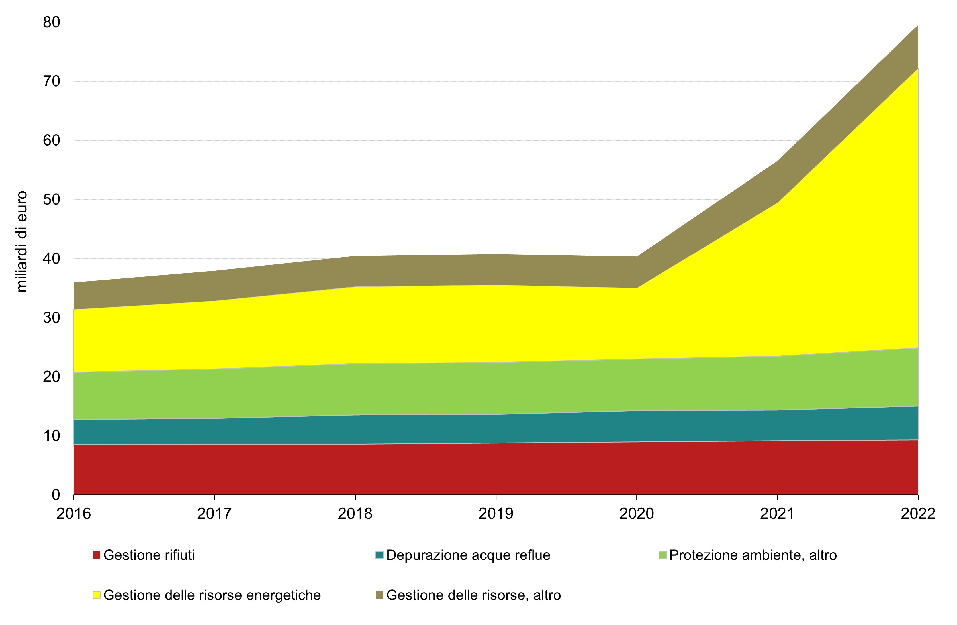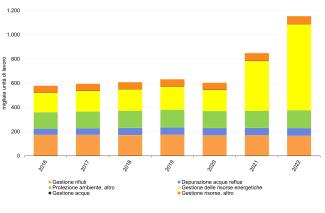 Istat: https://esploradati.istat.it/databrowser/#/it/dw/categories ---> Conti ambientali --> Conti dei beni e servizi ambientali