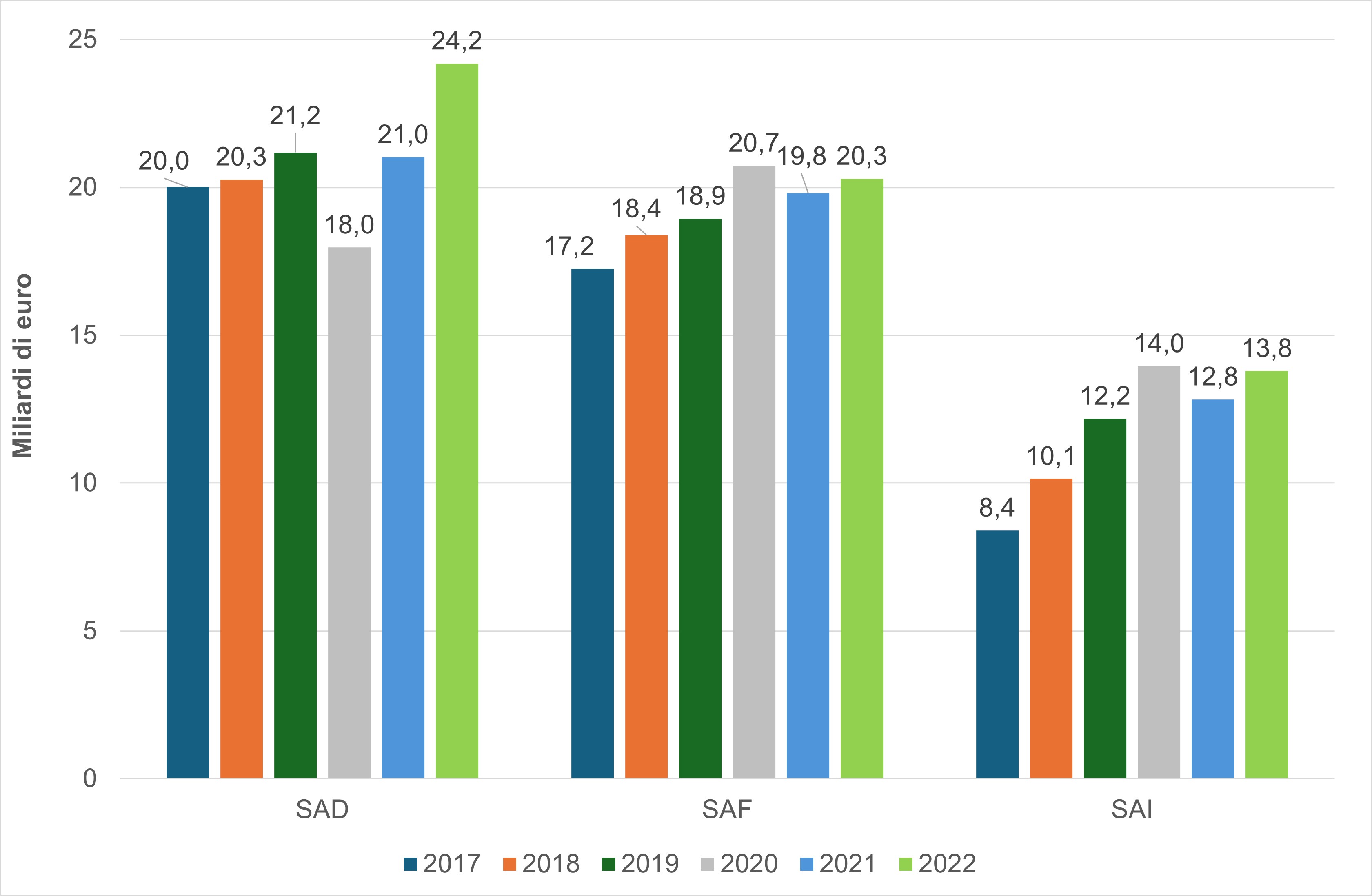 SAD: Sussidio Ambientalmente Dannoso; SAF: Sussidio Ambientalmente Favorevole; SAI: Sussidio Ambientalmente Incerto; d.q.: da quantificare