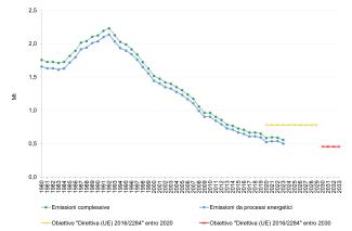 Nel 2023, il settore energetico è responsabile dell’emissione in atmosfera di 501kt di ossidi di azoto, pari all’89,8% del totale nazionale (Tabella 1), e registrando una riduzione del 59,4% rispetto al 2005, ha contribuito quindi in modo decisivo al raggiungimento dell'obiettivo prefissato.