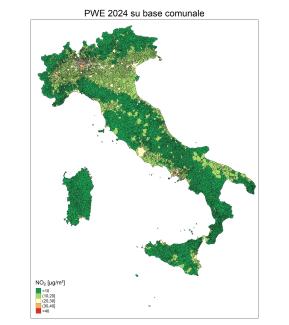 Sono state elaborate le stime dell’esposizione media annuale pesata per la popolazione (Population Weighted Exposure, PWE) al biossido di azoto (NO2) aggregata a livello comunale, mediante l’uso integrato di misure e modelli statistici. I dati ottenuti, relativi al periodo 2016-2024, permettono il confronto della PWE tra tutti i comuni e di avere un quadro completo dell’esposizione media a livello nazionale.