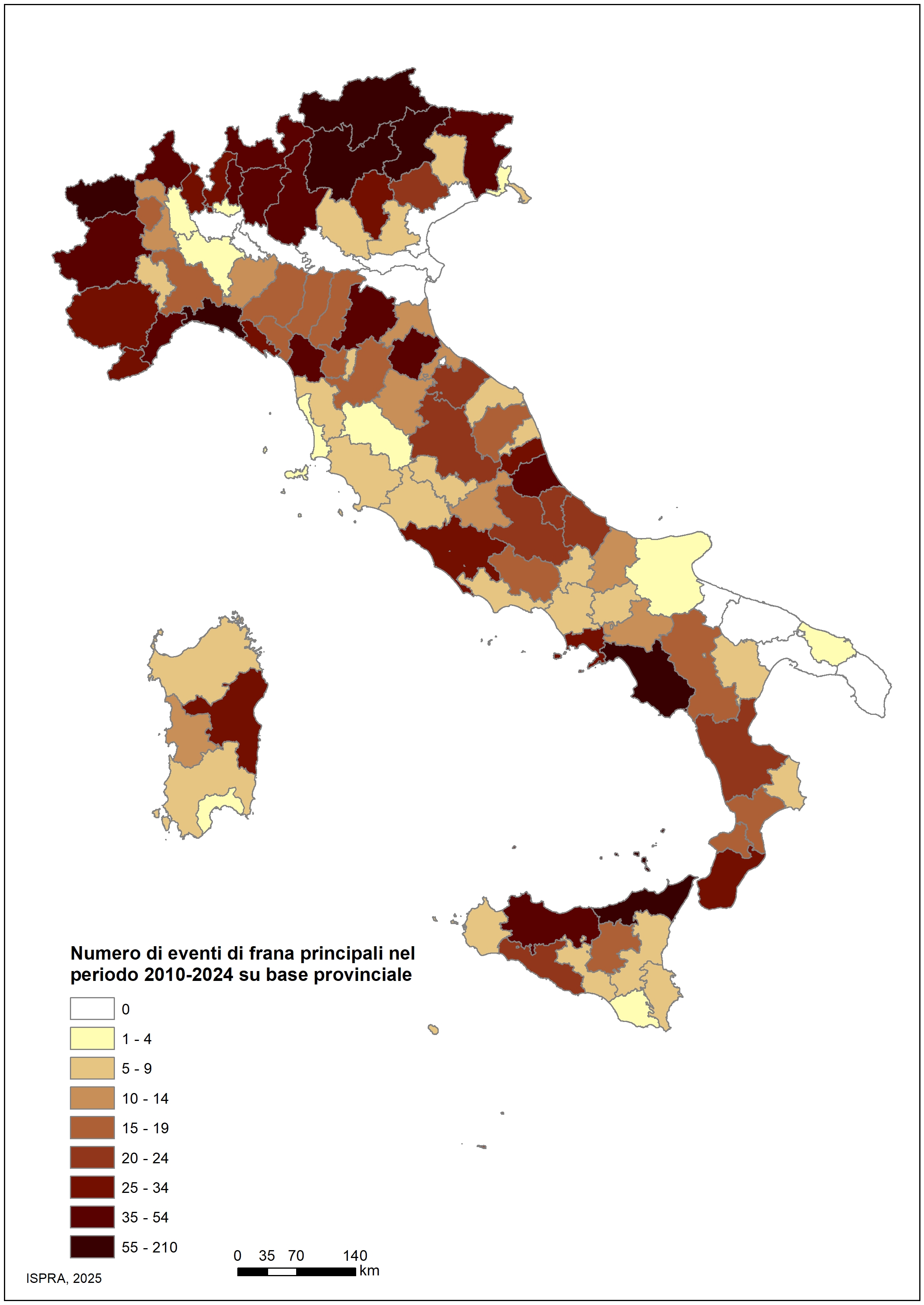 Elaborazione ISPRA su dati SNPA, Regioni, Province Autonome, Protezione Civile, CNR, Enti Gestori delle infrastrutture, siti internet