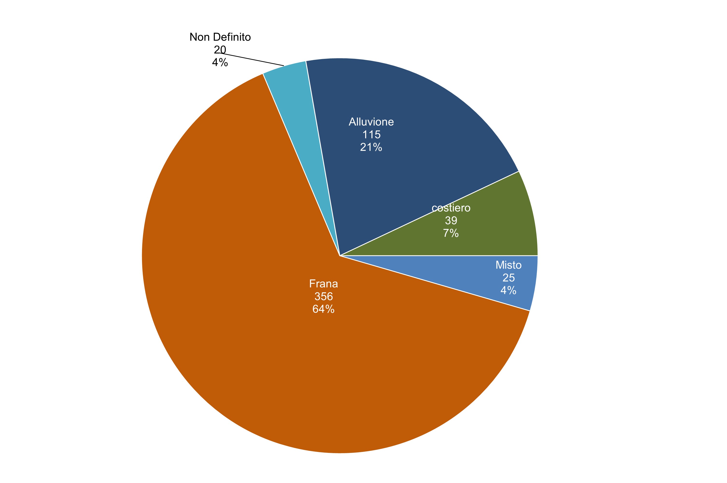 Spicca, invece, il numero elevato di Schede istruttorie in cui la tipologia di dissesto per la quale viene richiesto il finanziamento non viene definito, pari a 20, che da sole costituiscono il 4% delle richieste totali avanzate.