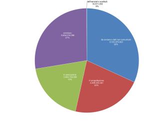 Considerando gli stessi dati dal punto di vista delle risorse stanziate ai fini della realizzazione degli interventi (Figura 4b), si evidenzia che solo il 27% (5.564 Mln €) di quelle complessivamente stanziate fa riferimento ad interventi conclusi, mentre la restante parte è relativa per il 19% (3.885 Mln €) ad interventi in fase di esecuzione, per il 22% (4.469 Mln €) ad interventi in fase di progettazione e per il 32% (6.534 Mln €) ad interventi ancora da avviare o senza dati comunicati.