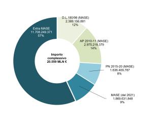 Se si analizzano i soli interventi di competenza MASE, il confronto tra il numero di interventi e dei relativi importi finanziati, in riferimento ai diversi Gruppi di finanziamento di evidenziare come gli interventi realizzati a seguito delle programmazioni successive al 2010 (Figure 1 a e 1b), siano caratterizzati da importi unitari mediamente più elevati rispetto alle programmazioni precedenti al 2010), indicando un orientamento più favorevole a progetti strategici definiti secondo una pianificazione degli interventi effettuata a scala più ampia .