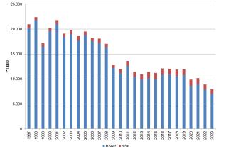 Nel 2023, i quantitativi di rifiuti speciali complessivamente smaltiti in discarica ammontano a 7,9 milioni di tonnellate, pari al 4,4% del quantitativo totale gestito a livello nazionale (circa 179 milioni di tonnellate). Rispetto al 2022, si rileva un decremento pari a circa 997 mila tonnellate (-11,2%), mentre, rispetto al 2021, si registra una riduzione di 2,3 milioni di tonnellate (-22,4%) (Tabella 1). Parallelamente alla quantità di rifiuti speciali smaltiti in discarica anche il numero di impianti continua a diminuire, raggiungendo 249 nel 2023 (Tabella 3).