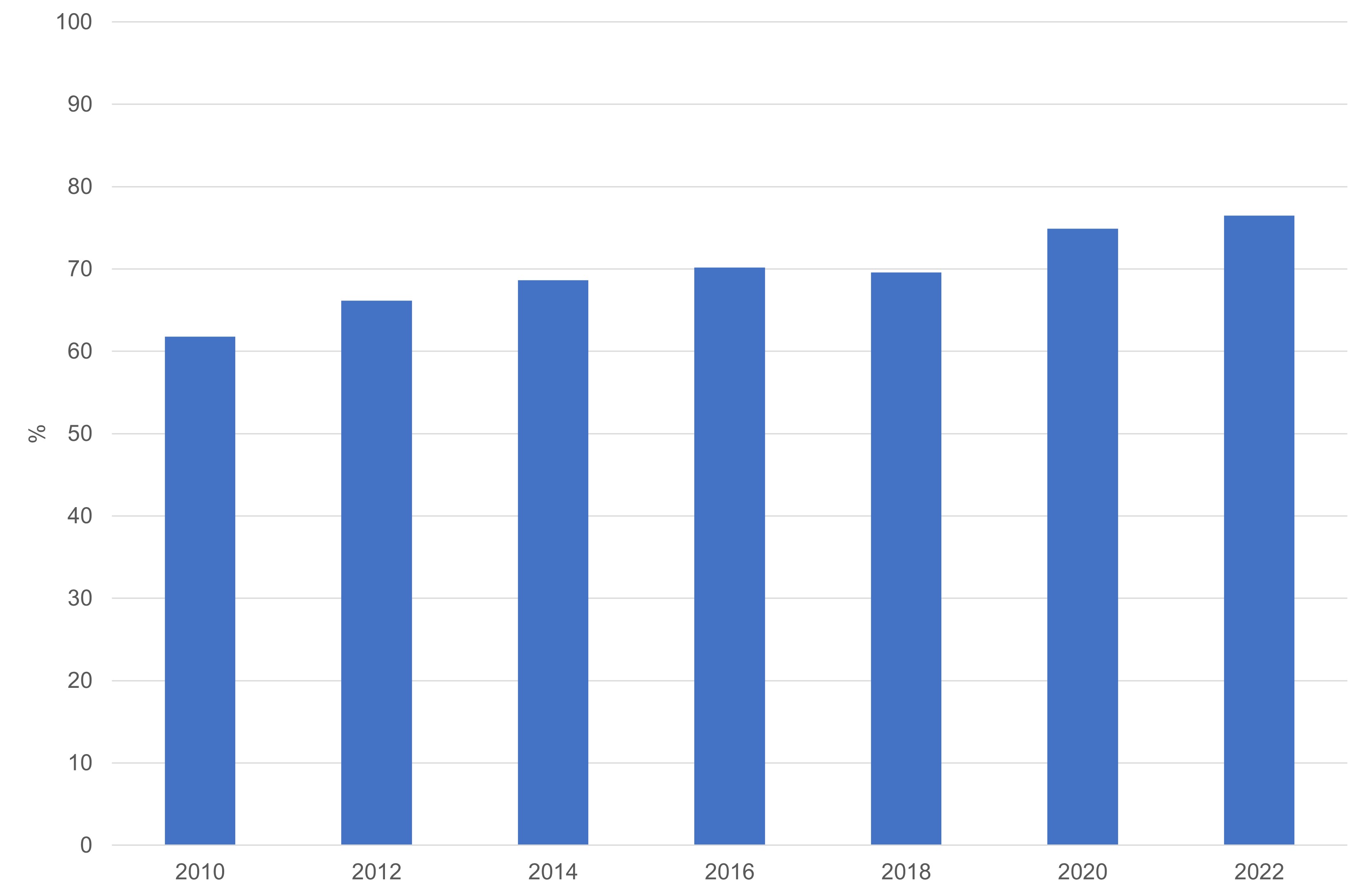 La percentuale di rifiuti riciclati rispetto al totale dei rifiuti avviati a operazioni di recupero/smaltimento, nel periodo 2010-2022 mostra un andamento crescente, passando dal 61,8% del 2010 al 76,5% del 2022, ad eccezione del 2018, anno in cui il tasso di riciclaggio presenta un calo di 0,6 punti percentuali rispetto al 2016. Si segnala che, nel 2020, nonostante l’emergenza sanitaria da COVID-19 abbia influito significativamente sui consumi nazionali e di conseguenza sulla produzione dei rifiuti, il sistema nazionale di gestione ha garantito l’intercettazione di flussi di rifiuti e il loro avvio a trattamento.