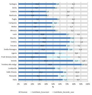 - la stima delle presenze in seconde case e delle escursioni giornaliere è indiretta e basata su indagini campionarie.