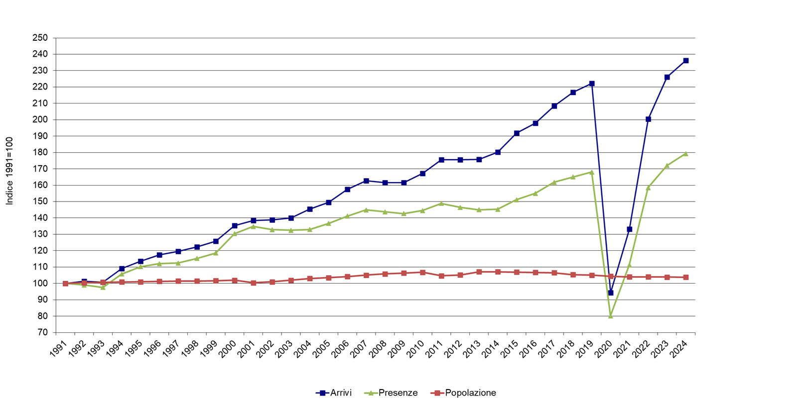 I totali riportati nelle tabelle possono risentire di lievi differenze dovute all'arrotondamento, ma il quadro generale evidenzia con chiarezza la crescita dell’intensità turistica nel 2024.